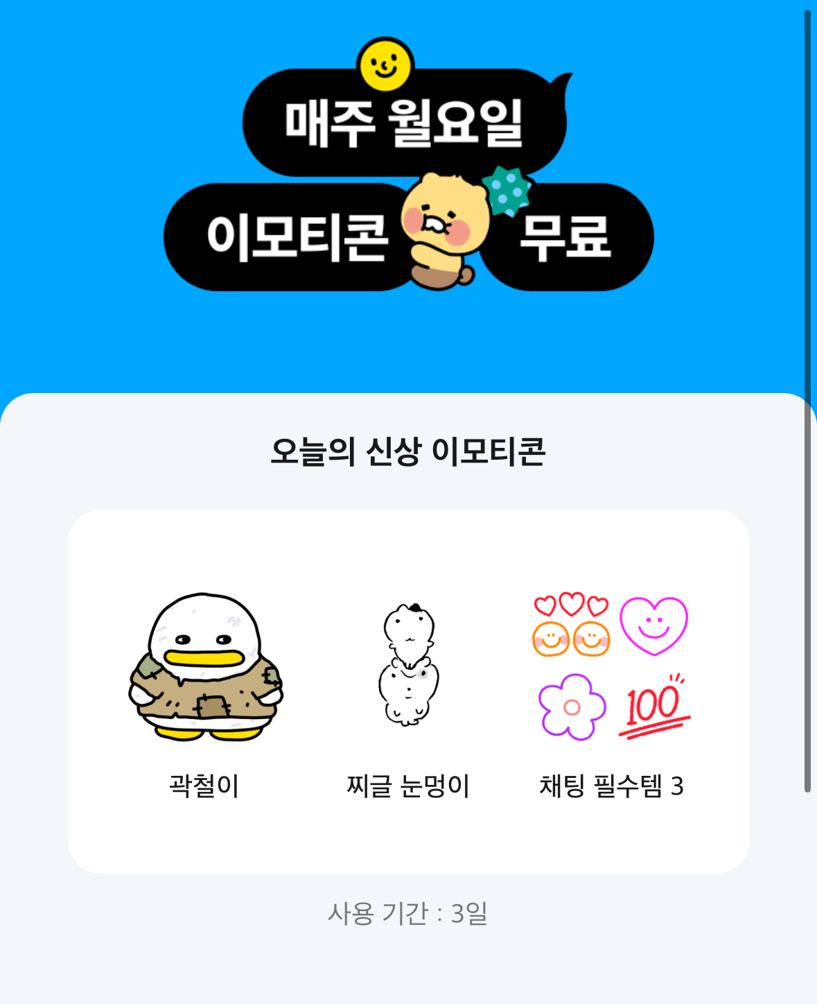 매주 월요일 카카오톡 이모티콘 3종 무료